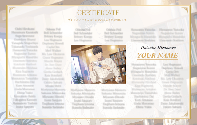 A certificate of digital art with your name on it will be issued!