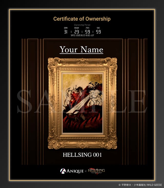 As the collector, your name will be displayed with the artwork at the online gallery of Anique. It is an open gallery, which other HELLSING fans could also access to this gallery and see your name.